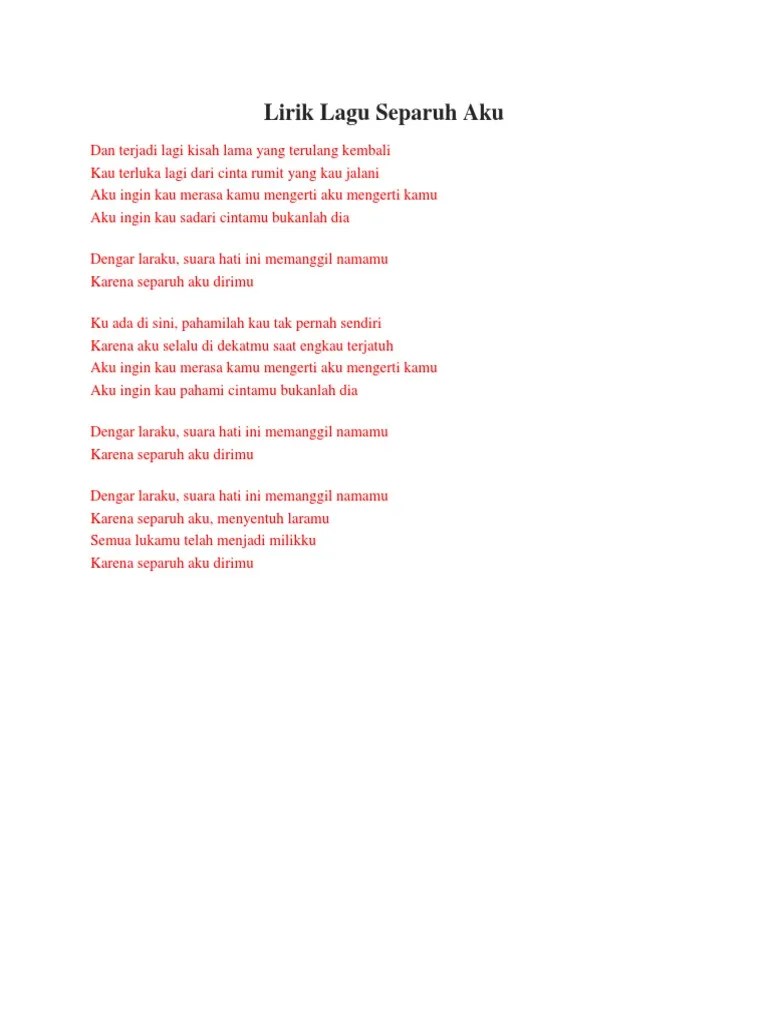 Semua yang ada di hatiku ini? Aku merindu ku yakin kau tau. Aku ingin kau ada disini. Ku kan slalu ada disisimu Dan tak ada yang bisa mengganti dirinya Tuhan engkau tahu aku mencintainya. Adiva merilis lagu untuk soundtrack dari serial berjudul "kisah untuk geri". Layanan mobile dari situs entertainment terbesar indonesia, kapanlagi.com. Ku takut nanti kita kan berhenti. Ku ingin kau tahu meski pun ku jauh . Namun kau selalu meniadakan aku Berikut cuplikan syair nyanyian / teks dari lagunya: Ku mohon engkau jangan pergi.